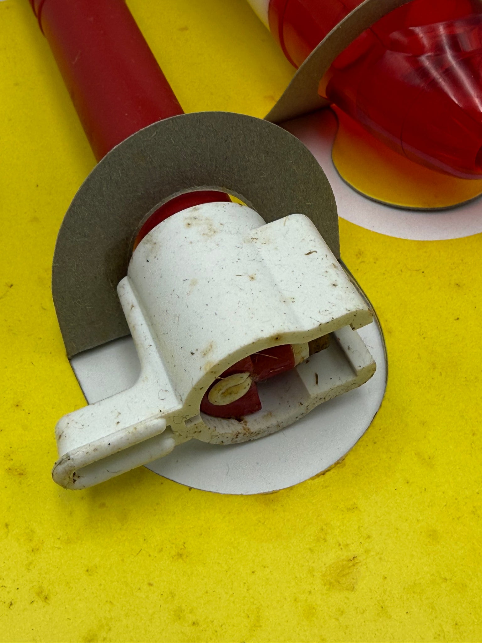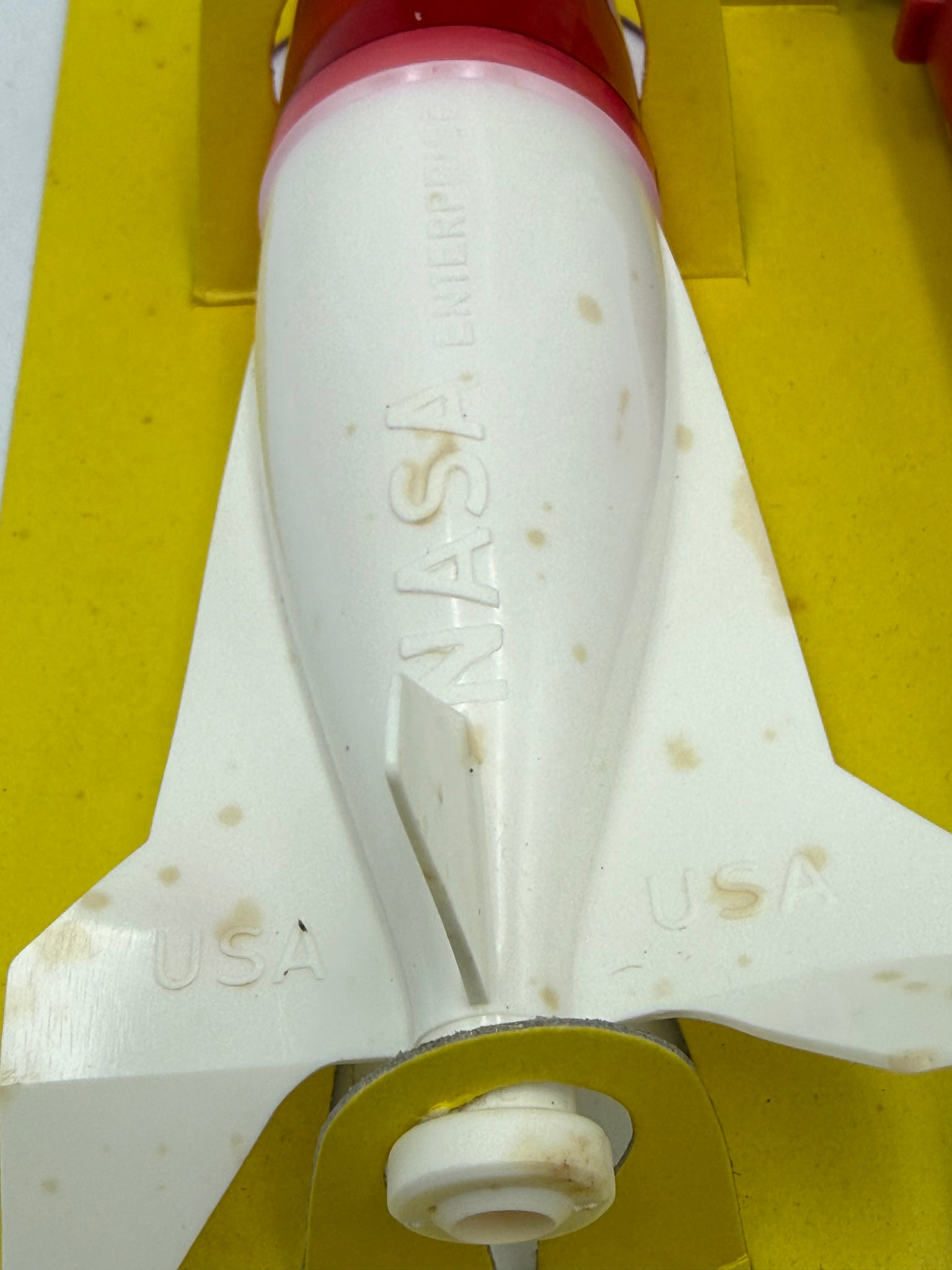 Storage marks and discoloration visible on box and/or toy